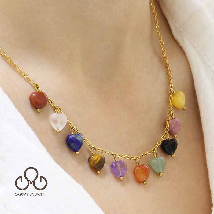 Tags: قلب سنگی, گالری ساتین, گردنبند خاص زنانه, گردنبند ده سنگ, گردنبند سنگی ظریف